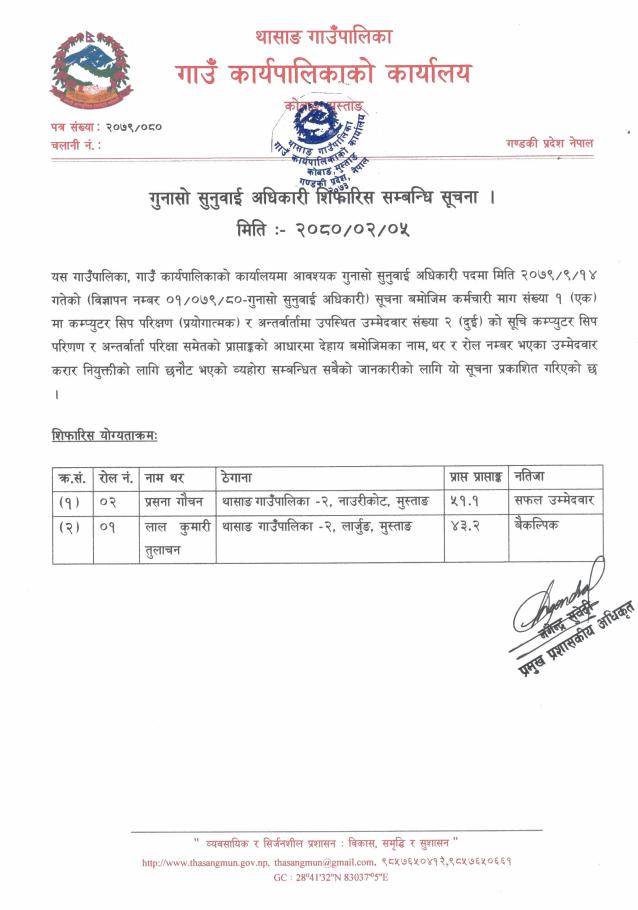 गुनासो सुनुवाई अधिकारी सिफारिस सम्बन्धि सूचना ।