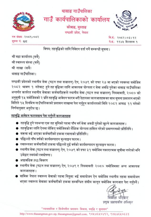 तहवृद्धिका लागि निवेदन पेश गर्ने सम्बन्धी सूचना।