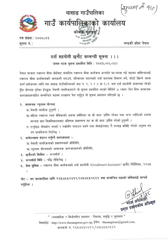 » दर्ता सहयोगी छनौट सम्बन्धी सूचना ।