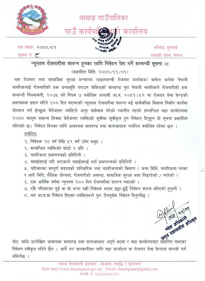 न्यूनतम रोजगारीमा संलग्न हुन निवेदन दिने सम्बन्धी सूचना ।
