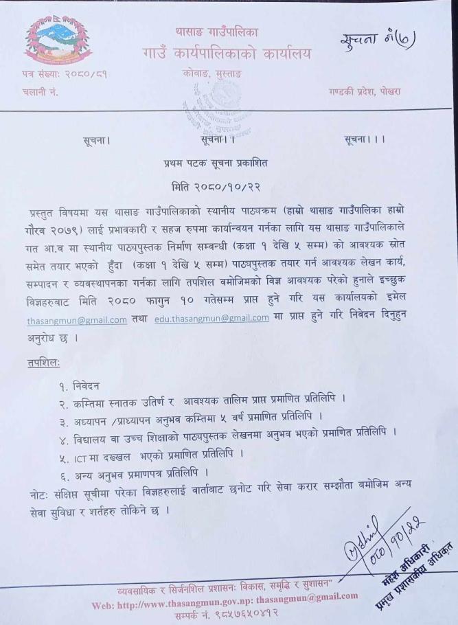 » पाठ्यपुस्तक तयारीको लागि आवश्यक विज्ञ सम्बन्धी सूचना ।