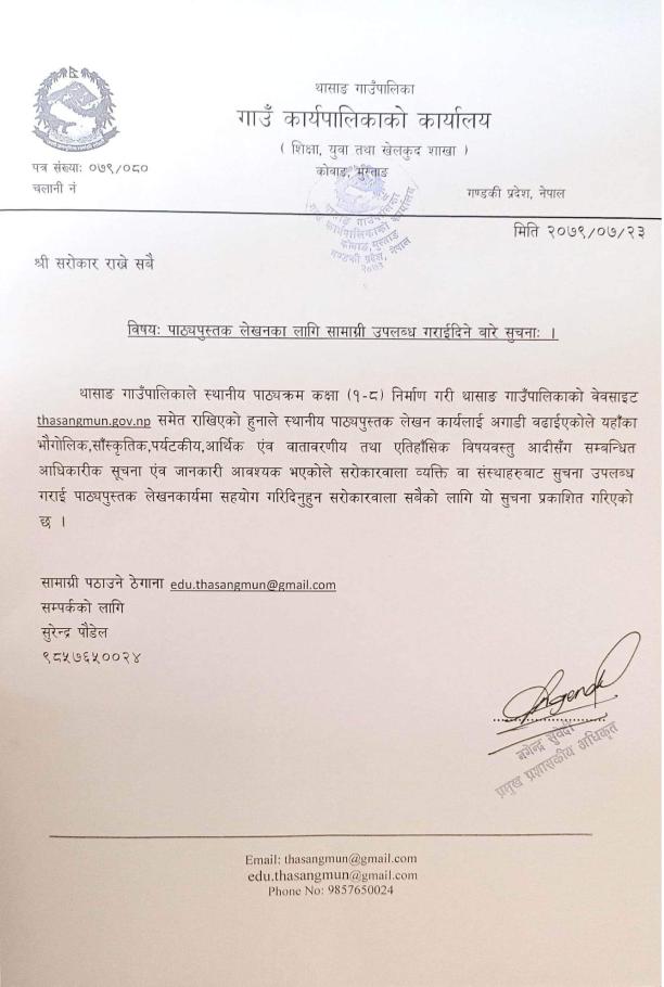 » पाठ्यपुस्तक लेखनका लागि सामाग्री उपलब्ध गराईदिने बारे सूचना ।