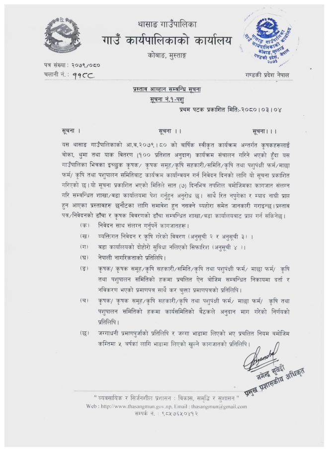 थासाङ गाउँपालिका, गाउँ कार्यपालिकाको कार्यालय