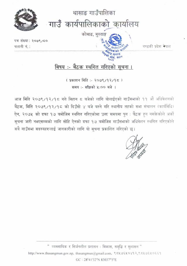 थासाङ गाउँपालिका, गाउँ कार्यपालिकाको कार्यालय