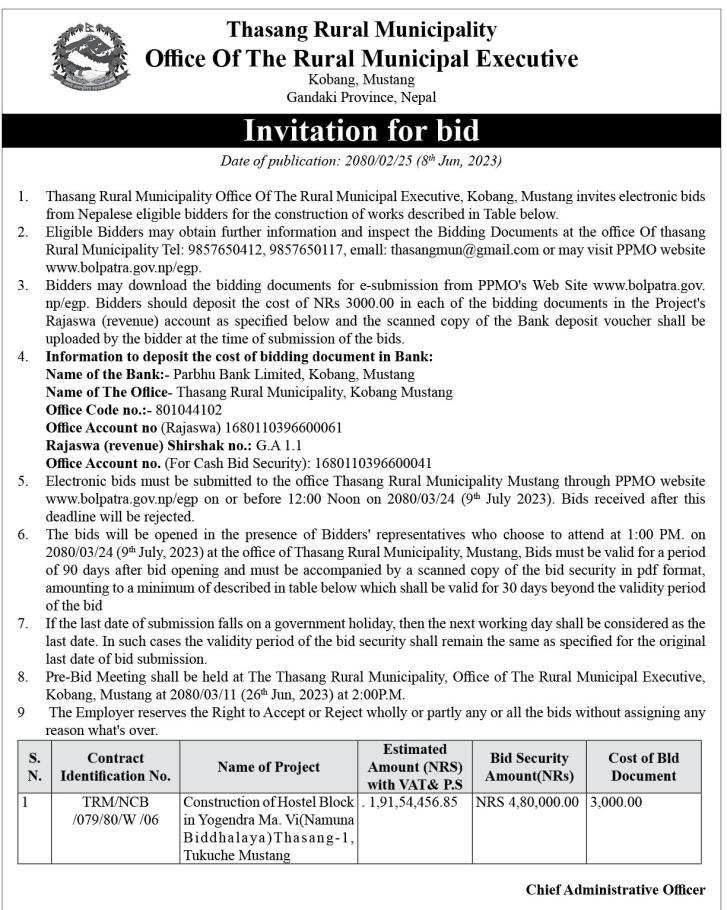 मिति २०८०/०२/२५ को बोलपत्र आव्हान सम्बन्धी सूचना ।
