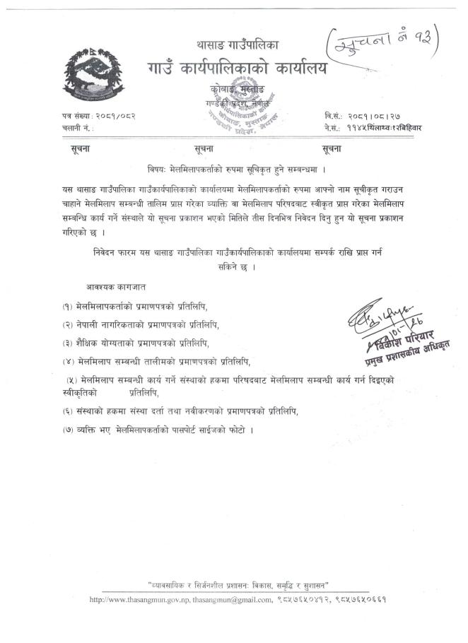 मेलमिलापकर्ताको रुपमा सूचिकृत हुने सम्बन्धमा ।
