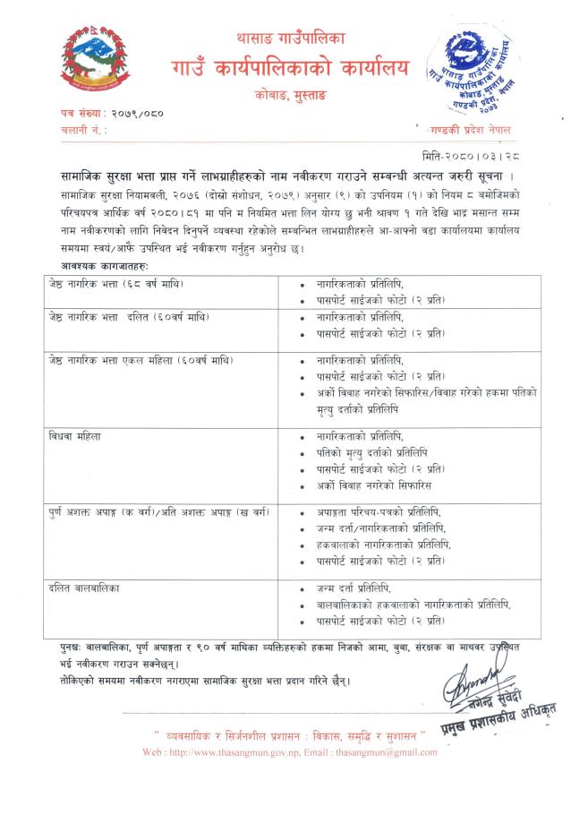 » सामाजिक सुरक्षा भत्ता पाउने लाभगाह्रीहरुको नाम नविकरण गर्ने सम्बन्धी सूचना ।