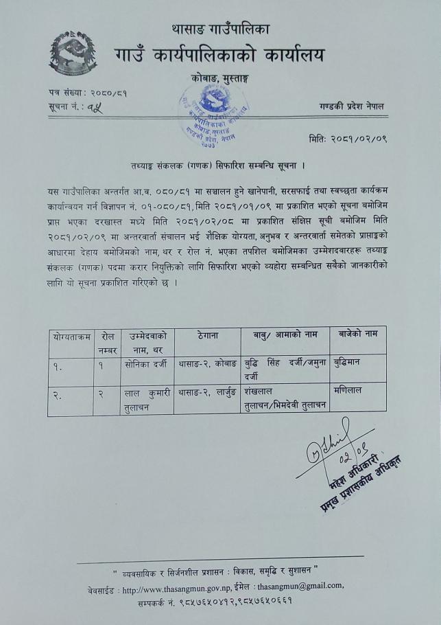 अ.न.मी. पदको अन्तिम नतिजा प्रकाशन सम्बन्धी सूचना।
