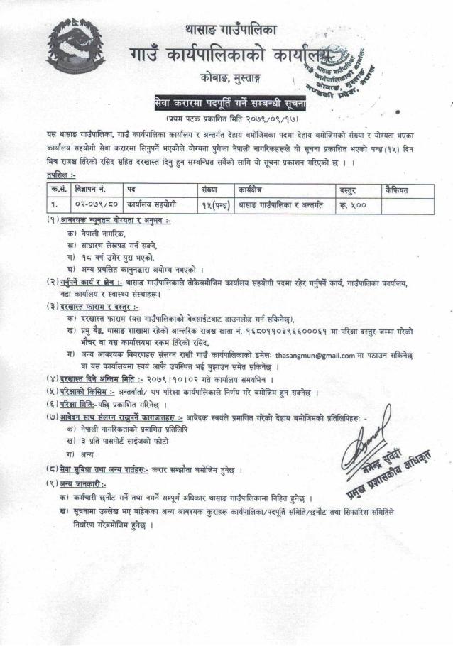 » सेवा करारमा कार्यालय सहयोगी पदपूर्ति गर्ने सम्बन्धी सूचना ।