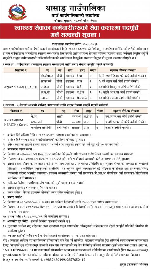 स्वास्थ्य सेवाका लागि विभिन्न पदमा करार पदपूर्ति गर्ने सम्बन्धी सूचना