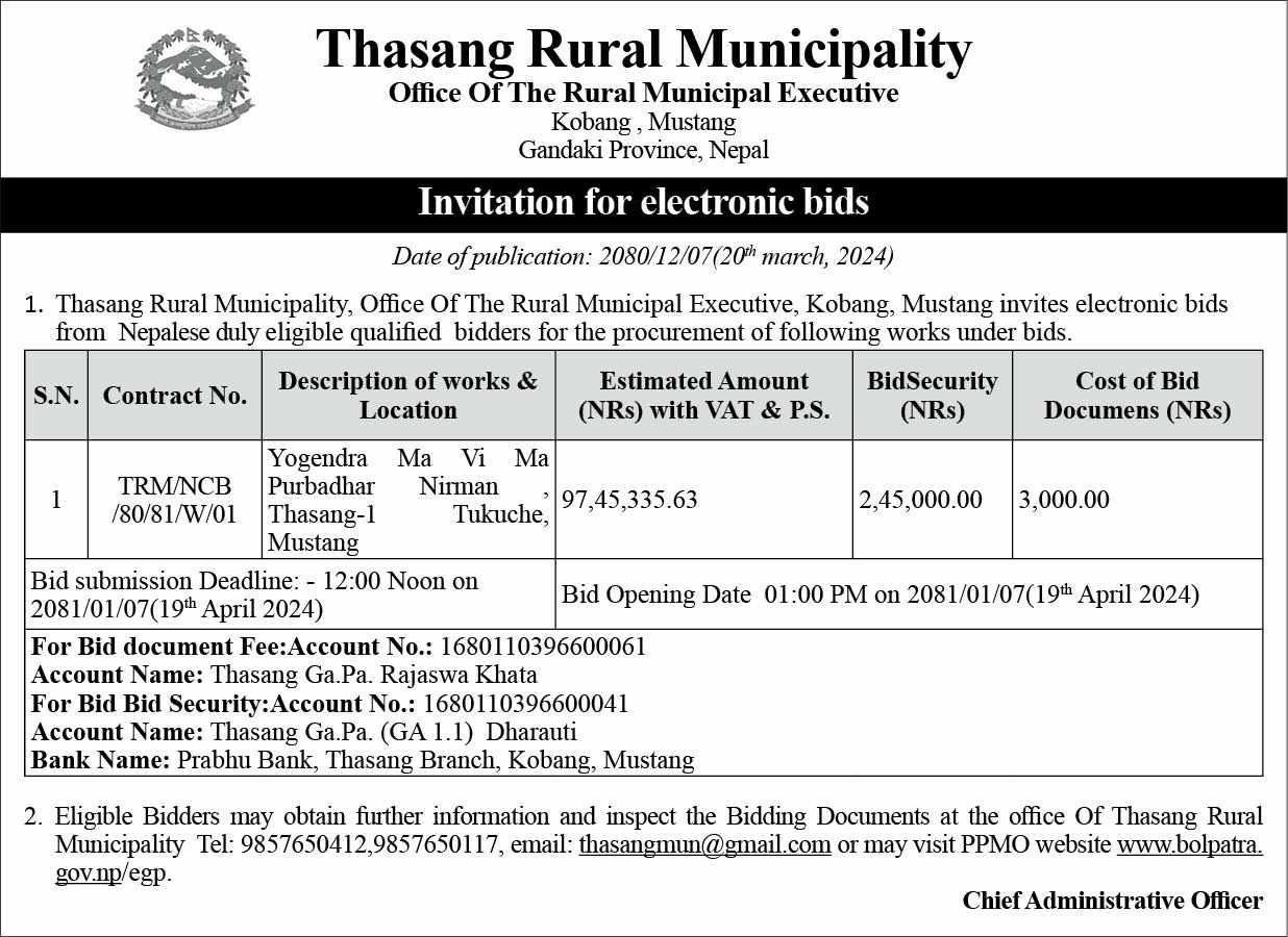 सार्वजनिक खरिद/बोलपत्र सूचना