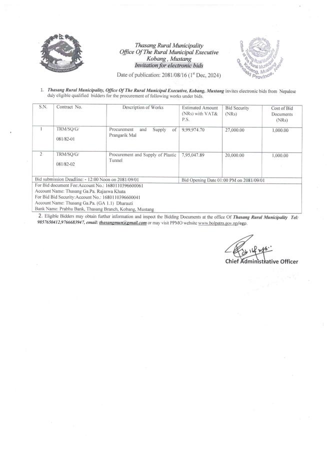 सार्वजनिक खरिद/बोलपत्र सूचना