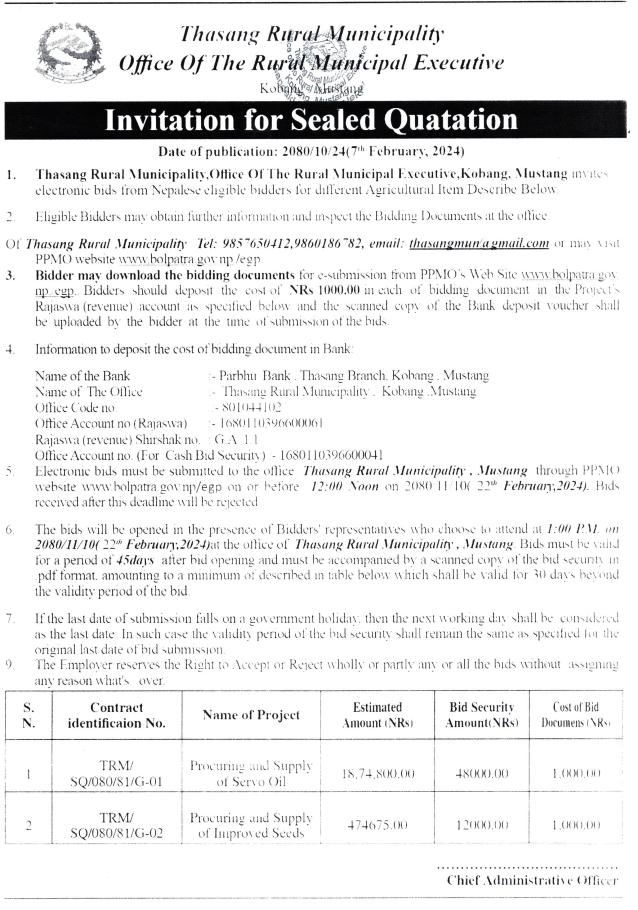 Invitation for Sealed Quotation