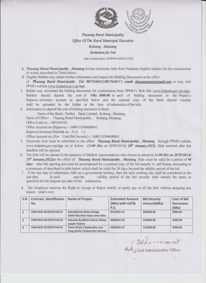 सार्वजनिक खरिद/बोलपत्र सूचना