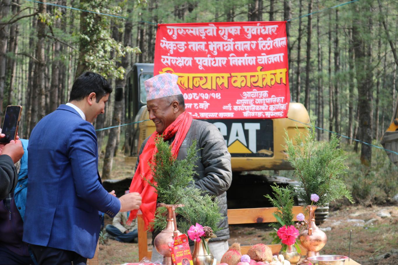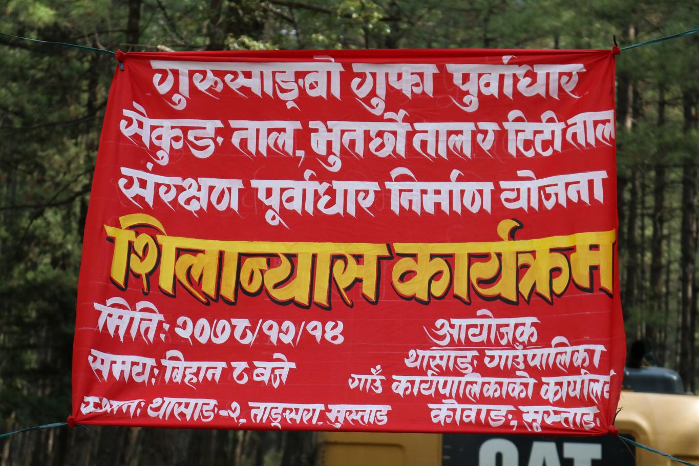 थासाङ गा.पा. अध्यक्ष श्री बुद्धि प्रसाद शेरचन ज्युको अध्यक्षता र प्रमुख अतिथि माननीय प्रेम प्रसाद तुलाचन ज्यू द्वारा गुरुसाङ्बो गुफा पूर्वाधार सेकुङ ताल भुतर्छो ताल र टिटि ताल संरक्षण शिलान्यास कार्यक्रम २०७८/१३/१४