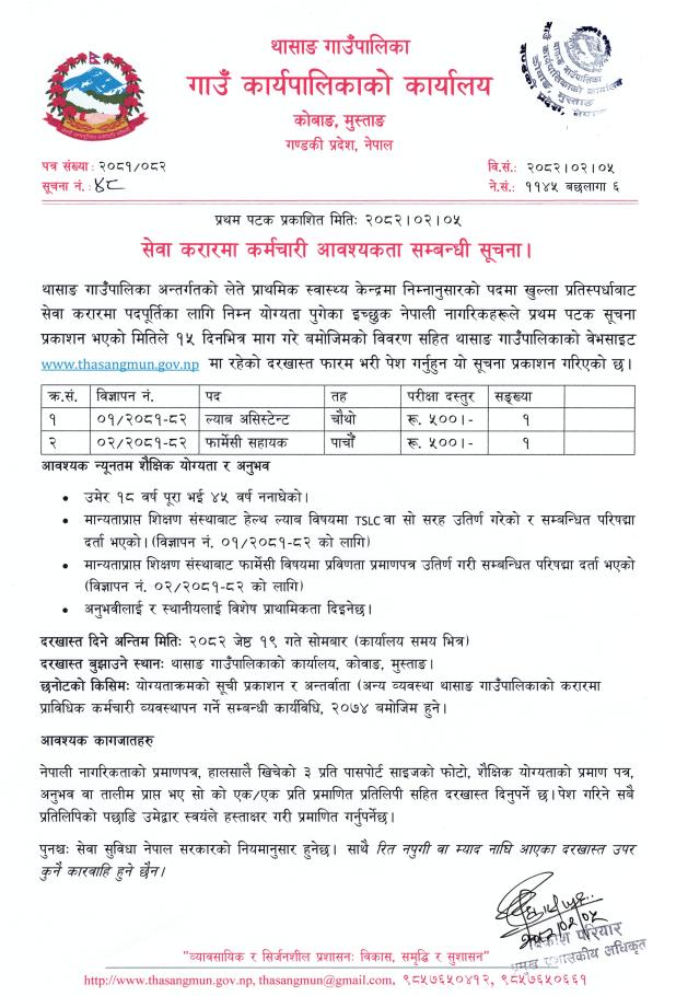 करारमा पदपूर्ती सम्बन्धी सूचना।