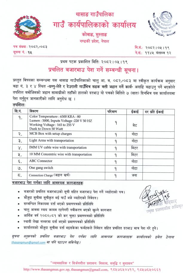 सडक बत्तिका लागि प्रतलित बजारभाउ पेश गर्ने सम्बन्धी सूचना।