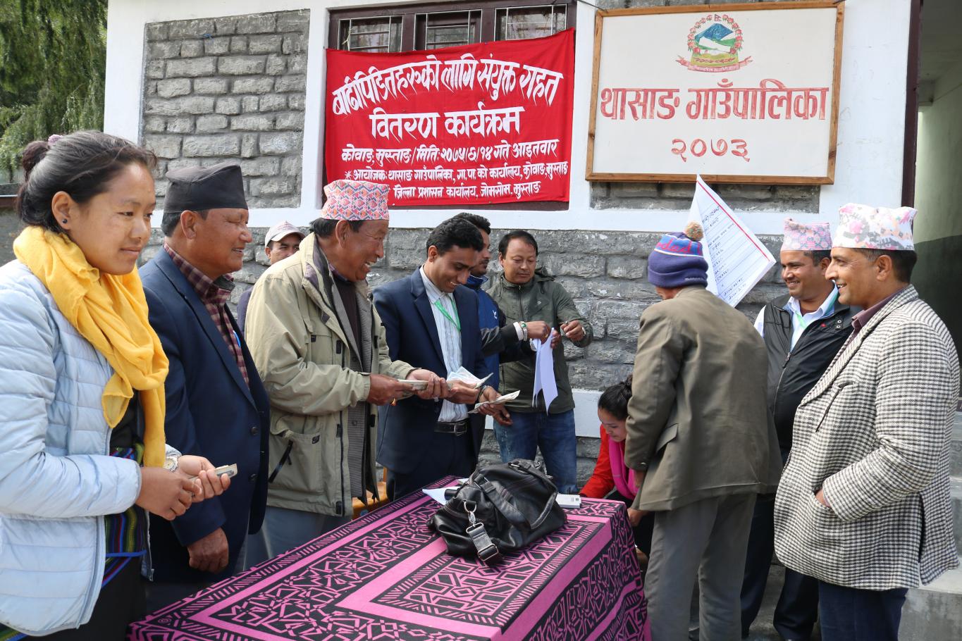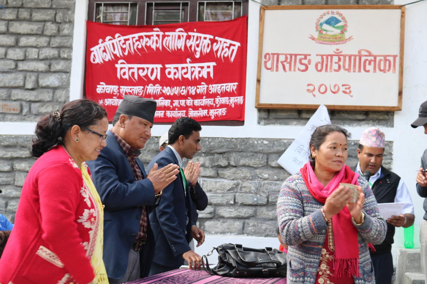 थासाङ गाउँपालका र जिल्ला प्रशासन कार्यालय मुस्ताङकाे बाढी पिडितहरूलाइ संयुत्त राहत वितरण कार्यक्रम